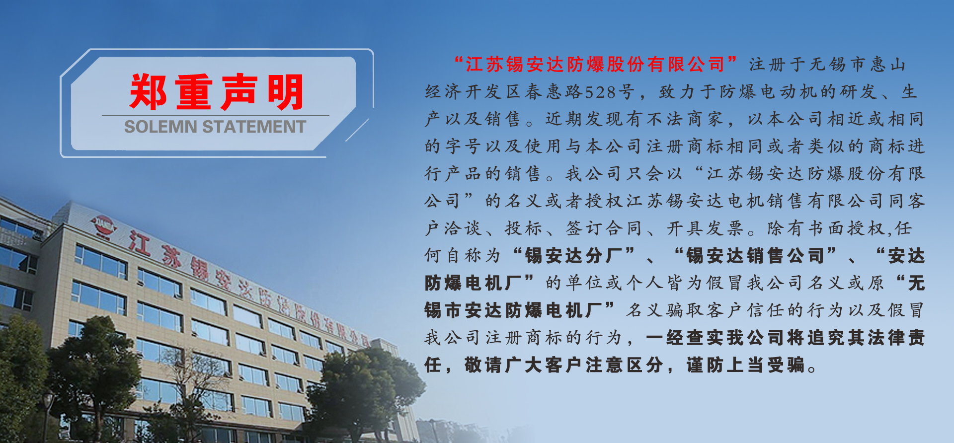 江蘇錫安達(dá)防爆股份有限公司由無錫市安達(dá)防爆電機(jī)廠和江蘇安達(dá)防爆機(jī)電集團(tuán)有限公司組建而成,從1986年起開始生產(chǎn)防爆電機(jī),是首批獲得全國工業(yè)產(chǎn)品生產(chǎn)許可證的防爆電機(jī)企業(yè)。